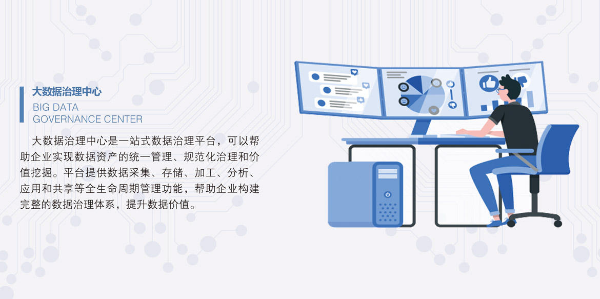 大數據治理中心是一站式數據治理平臺,可以幫助企業實現數據資產的統一管理、規范化治理和價值挖掘。平臺提供數據采集、存儲、加工、分析、應用和共享等全生命周期管理功能,幫助企業構建完整的數據治理體系,提升數據價值。