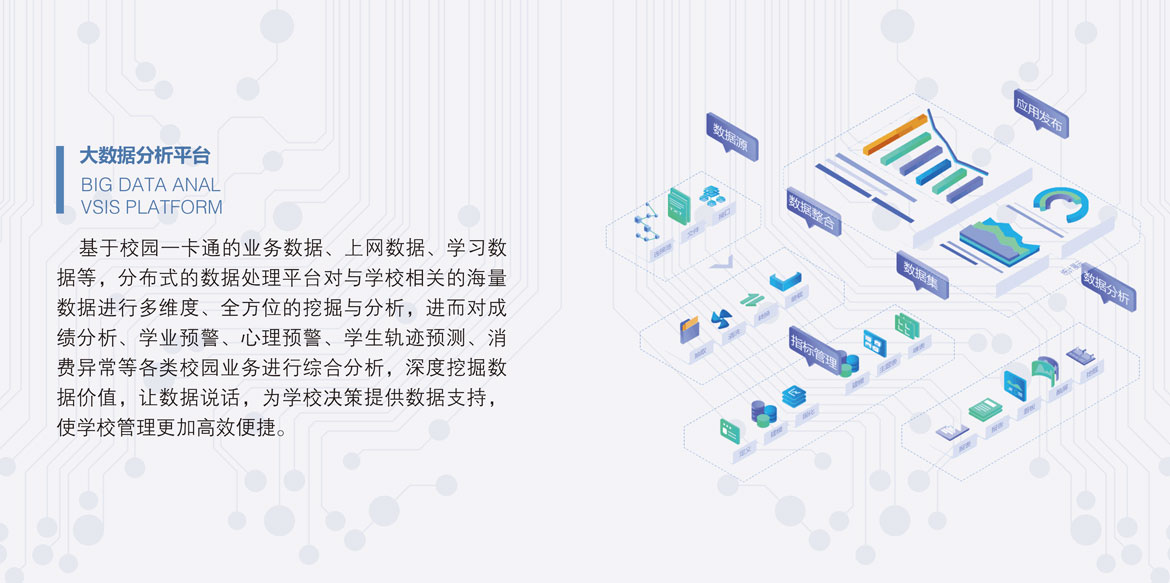 校園大數據分析平臺為校園數據收集、數據處理、數據存儲、數據分析與挖掘提供標準體系管控及基礎平臺支撐。